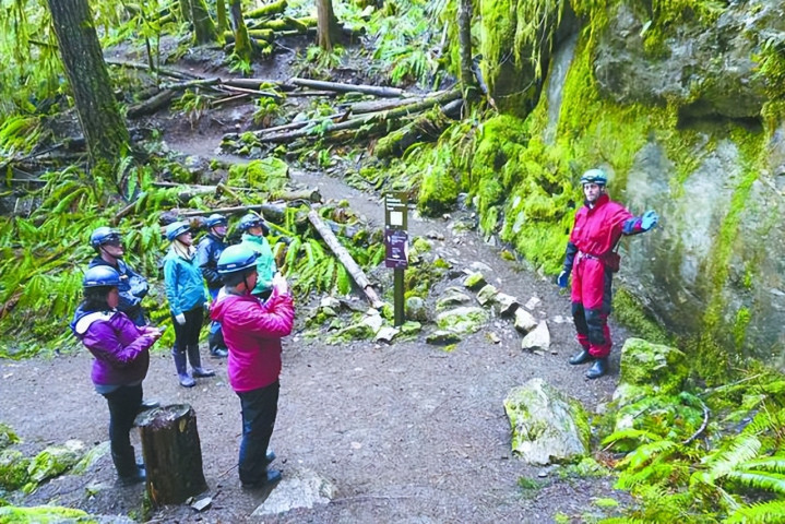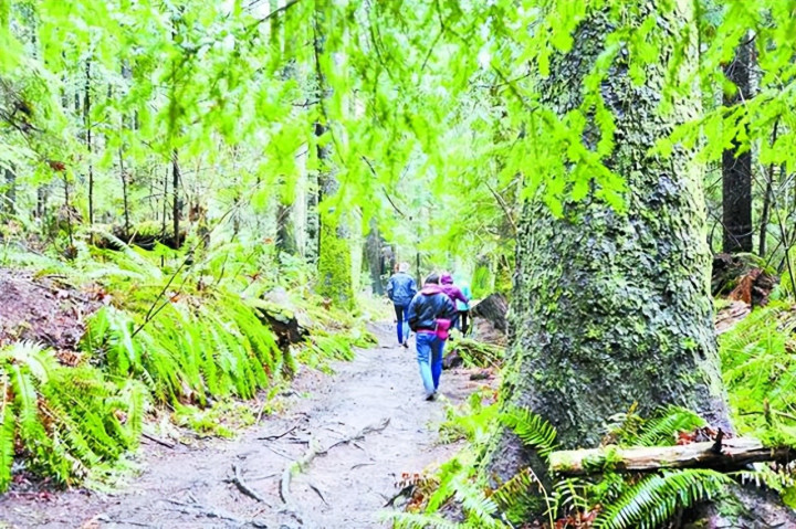 吉布森斯东谈主最爱来索姆斯山省立公园徒步,呼吸更为极新的空气,几条强度不同的小路将东谈主引向山顶。林间小路并无任何东谈主工修饰,游东谈主或迈过水洼,或踩过厚厚的落叶,即使是安全护栏和台阶亦然原木木板搭就,融入肥硕的苍翠。其中,最陡的一条道路终末需踏完434步天梯,方可到达尖端。