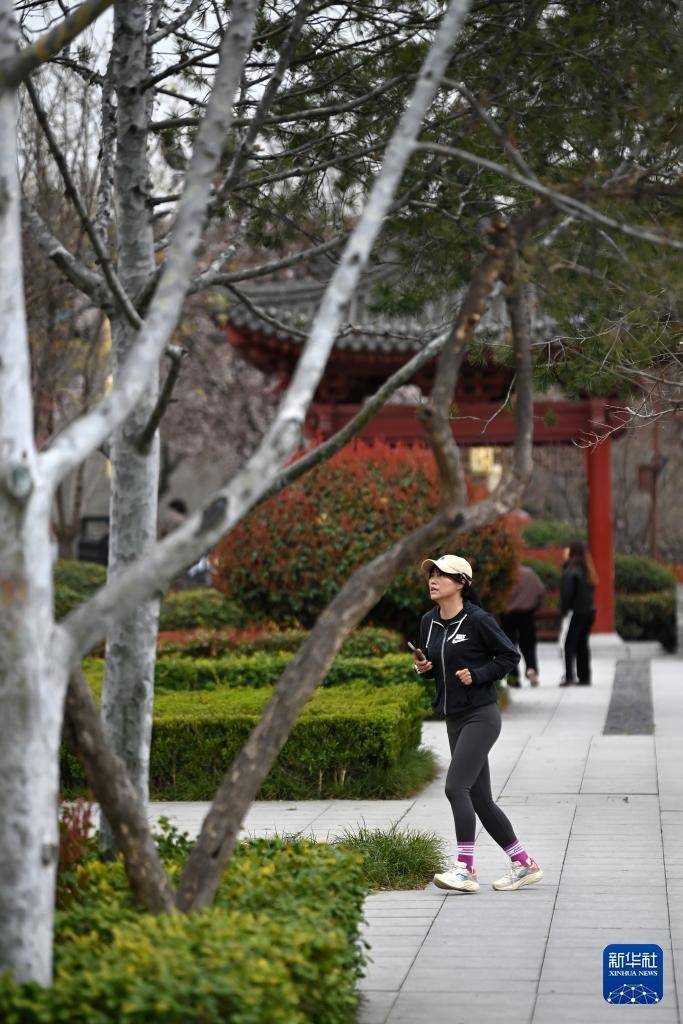 3月20日,市民在西安城墙环城公园文昌门至和平门段晨跑。