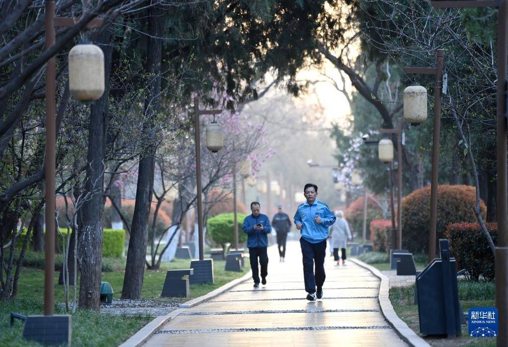 3月19日,市民在西安城墙环城公园玉祥门至平缓门段晨跑。