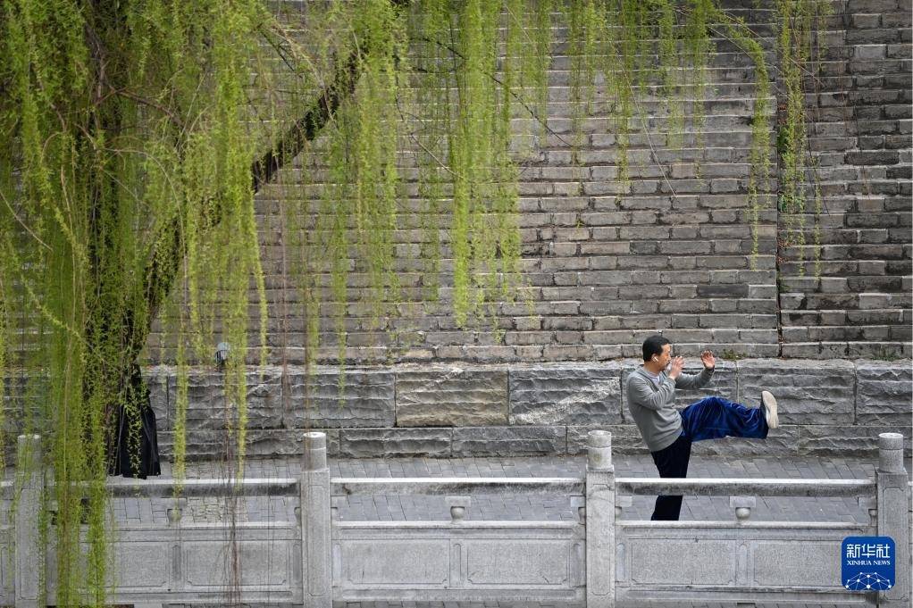 3月20日,市民在西安城墙环城公园和平门至开国门段教育技击。